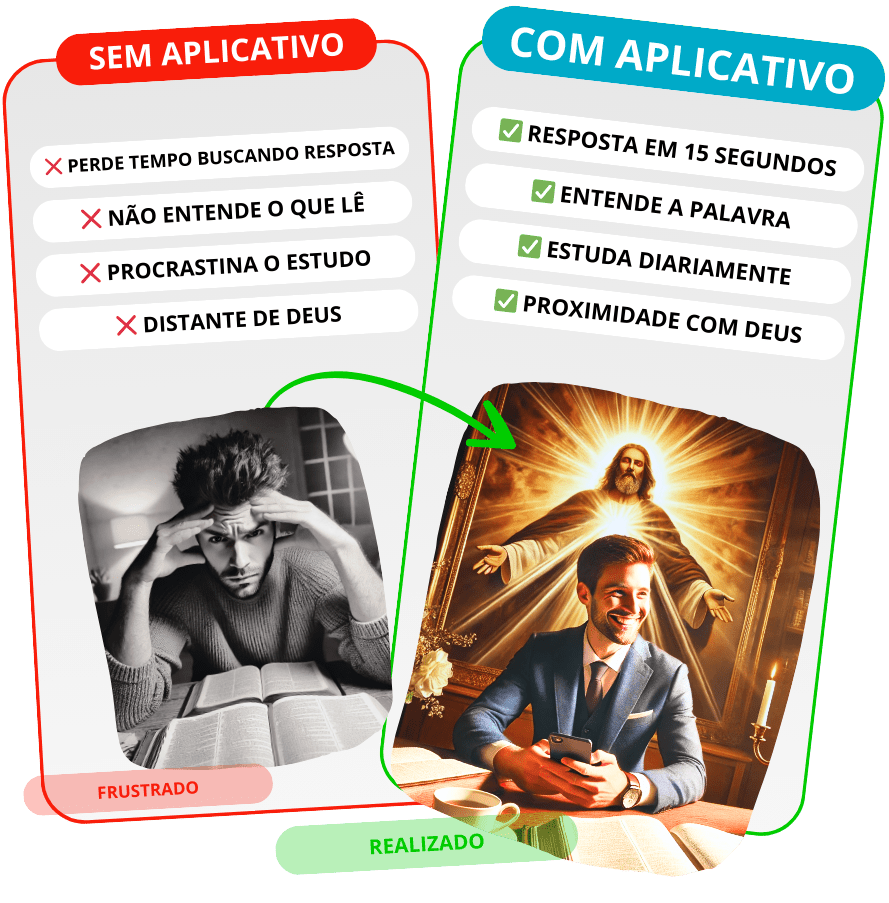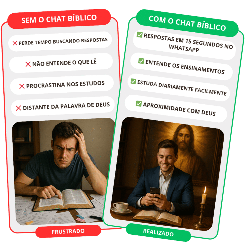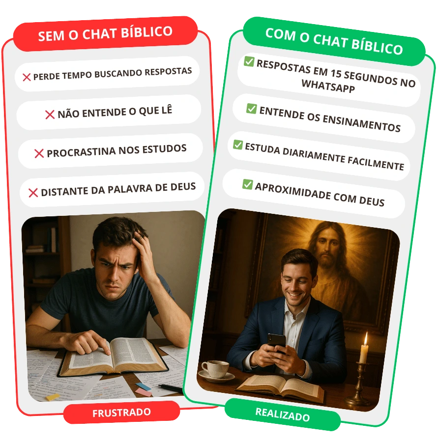 É simples assim: você envia qualquer versículo ou dúvida sobre a Bíblia no WhatsApp e recebe a explicação totalmente fiel, clara e prática em até 15 segundos.